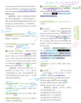 中后期,我不再跟着视频课走,有了前期打下的单词基础,我开始从英语真题中寻找生词和长难句,摸索做题技巧。这一阶段,我用iPad+Apple Pencil做真题(PDF版,使用的软件是PDF Expert),做完后传到Mac上,用Mac端的PDF Expert进行批改,再把生词添加到Anki中反复学习。