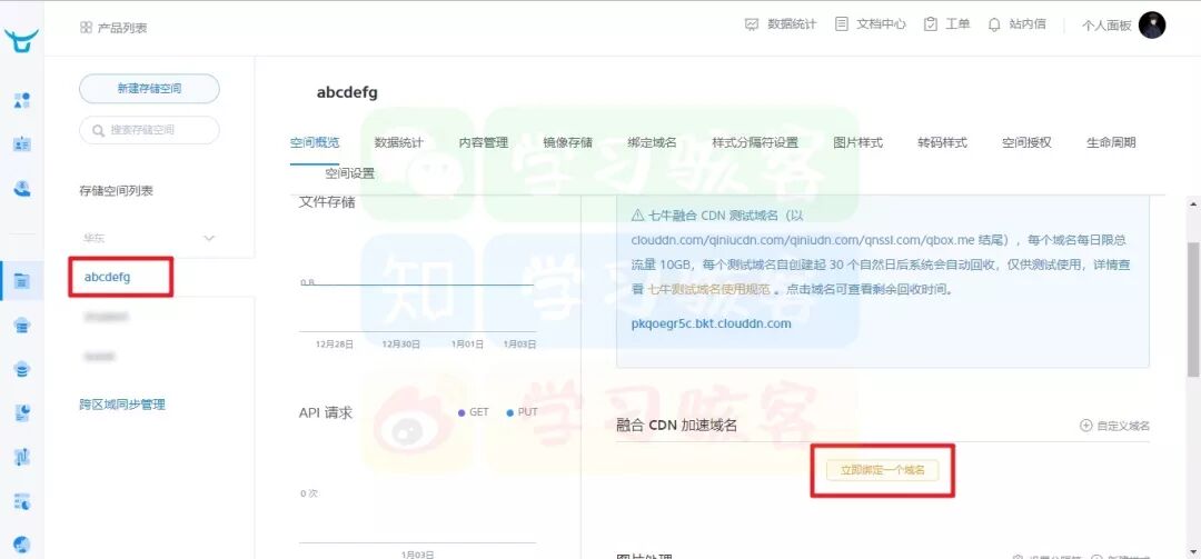 https://portal.qiniu.com/bucket/abcdefg/index 。