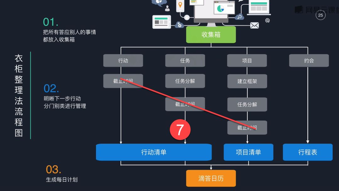 以下图为例,这是一篇关于时间管理中任务收集和处理的流程图(截图经授权转载自网易云课堂《跟邹小强学习滴答清单》)。