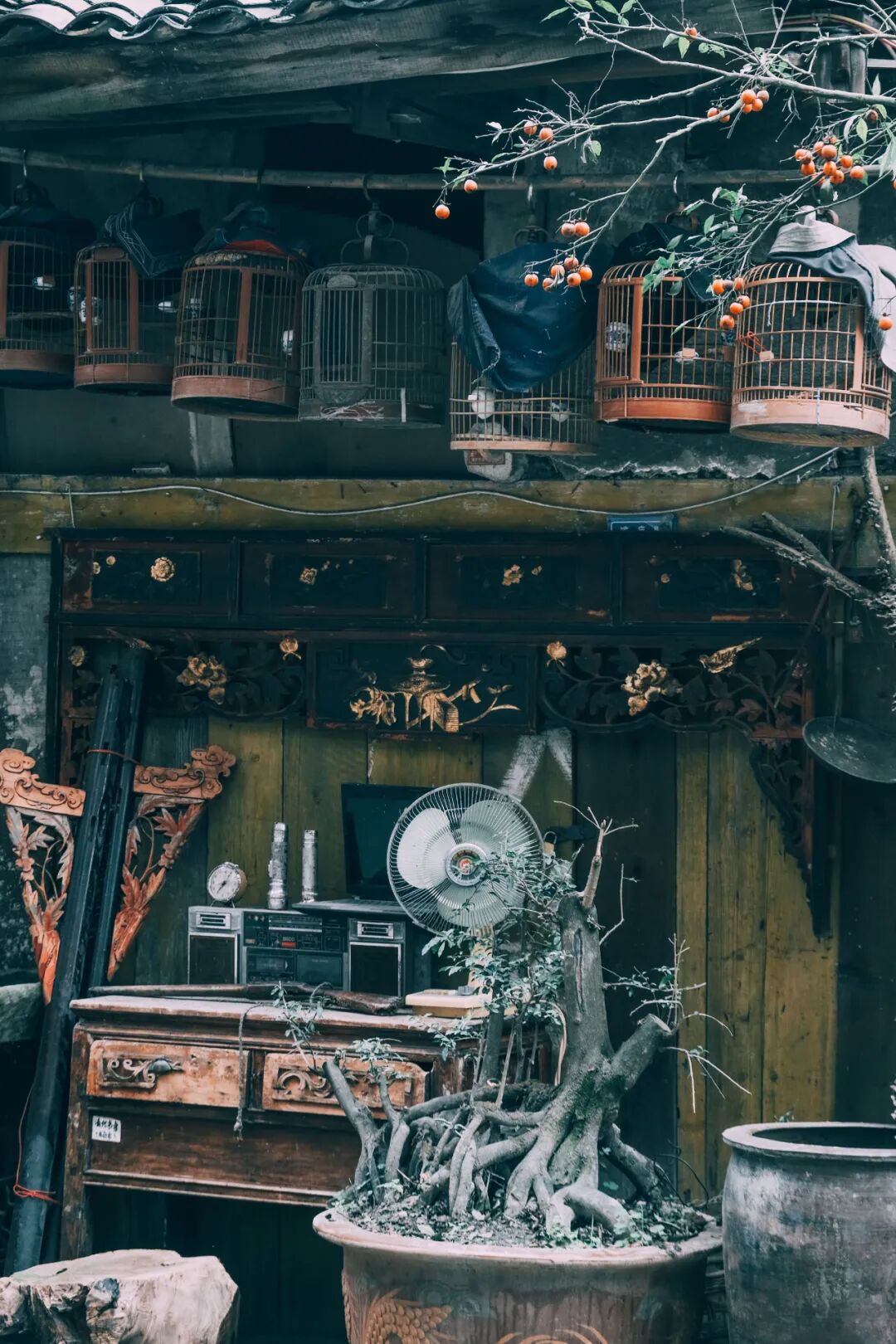 光是闲逛宝藏店铺,都能消磨好几个小时时光,不仅好逛,风格迥异的ta们更是一个比一个好拍。花上一两个小时细逛文庙山街,再从文庙山街出来,一个转角走进文庙街,恰巧偶遇一个骑着老式三轮车的老人,慢悠悠的从梧桐树下穿过,一晃神就像穿越了时光。眼前是快要脱落的墙体、黑瓦屋檐、旧门牌、老式电视机、自行车、缝纫机、照相机、复古的器具.....这些似乎只有在童年里才会看到的东西,突然一下子映入眼帘,瞬间勾起一幕幕回忆。街道不长,但两边屋檐下摆满了货物,一路边走边看,总能发现不少惊喜和宝贝。如果运气好遇到这些物件的主人正好在家,指不定还可以淘一两件心爱的东西带回去。天气好的话,就去隔壁找一家茶馆,逛累了就可以去喝喝茶歇歇脚,再拍拍照片也是很巴适。