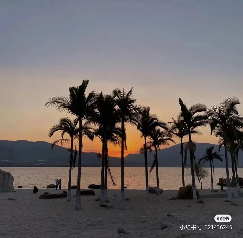 村内翻修后的灵鹰寺,橙墙青瓦,配上明媚柔和的阳光,偷得浮生半日闲~拍照也是相当出片。再驱车到不远的核桃村,乘坐观光车(10元/人)即可直达金鳞沙滩。这里是娃娃们挖沙天堂,带上小桶、铲子就能耗掉大半天的闲暇时光。细软白沙、椰林蓝天、碧波荡漾,带上垫子、吊床、帐篷等,找好角度一拍,还以为去了三亚!![]()