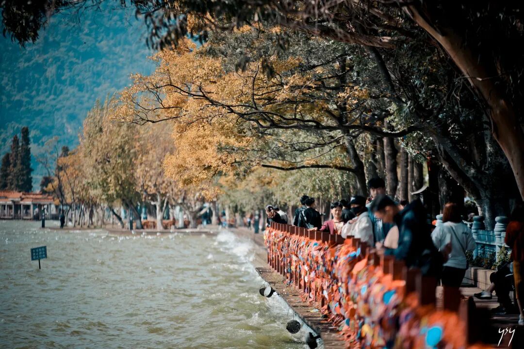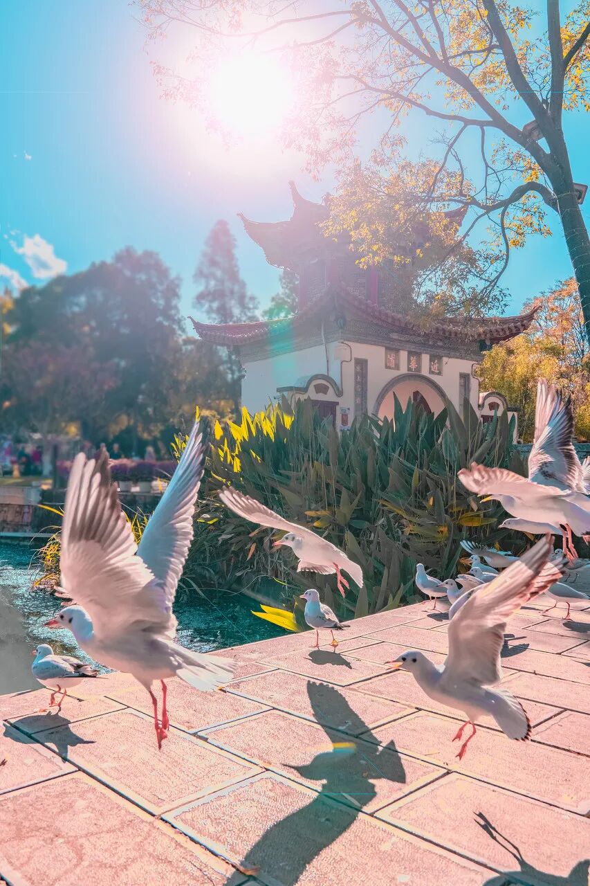 来昆明,一定要去滇池逛逛,这里的面积将近于7个泸沽湖,站在滇池边远望,清透的湖水和澄澈的天空交汇,满眼蓝色,让人沉醉。冬季成群的海鸥飞翔在低空,你大可以和它们尽情互动,它们一点也不怕人,而是愿意和大家一起共享这个舒适的昆明。出行tips