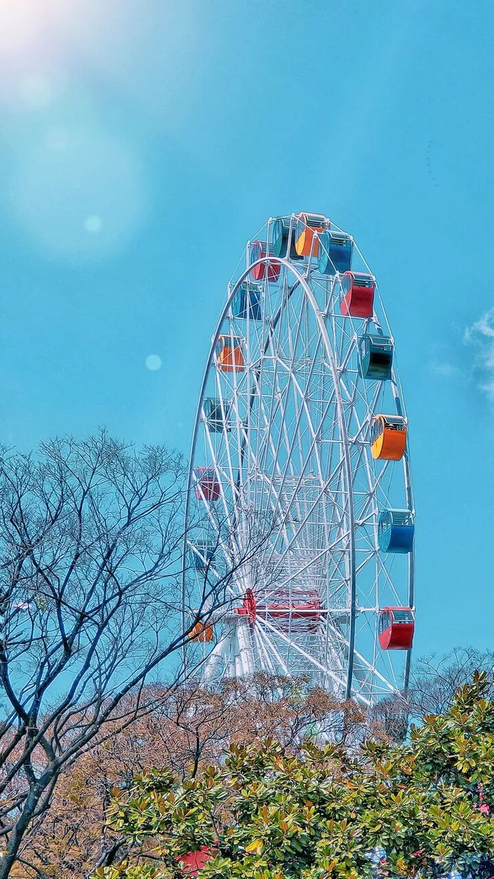 满树的粉红,一片生机盎然,蓝天白云映照下,浪漫无比!