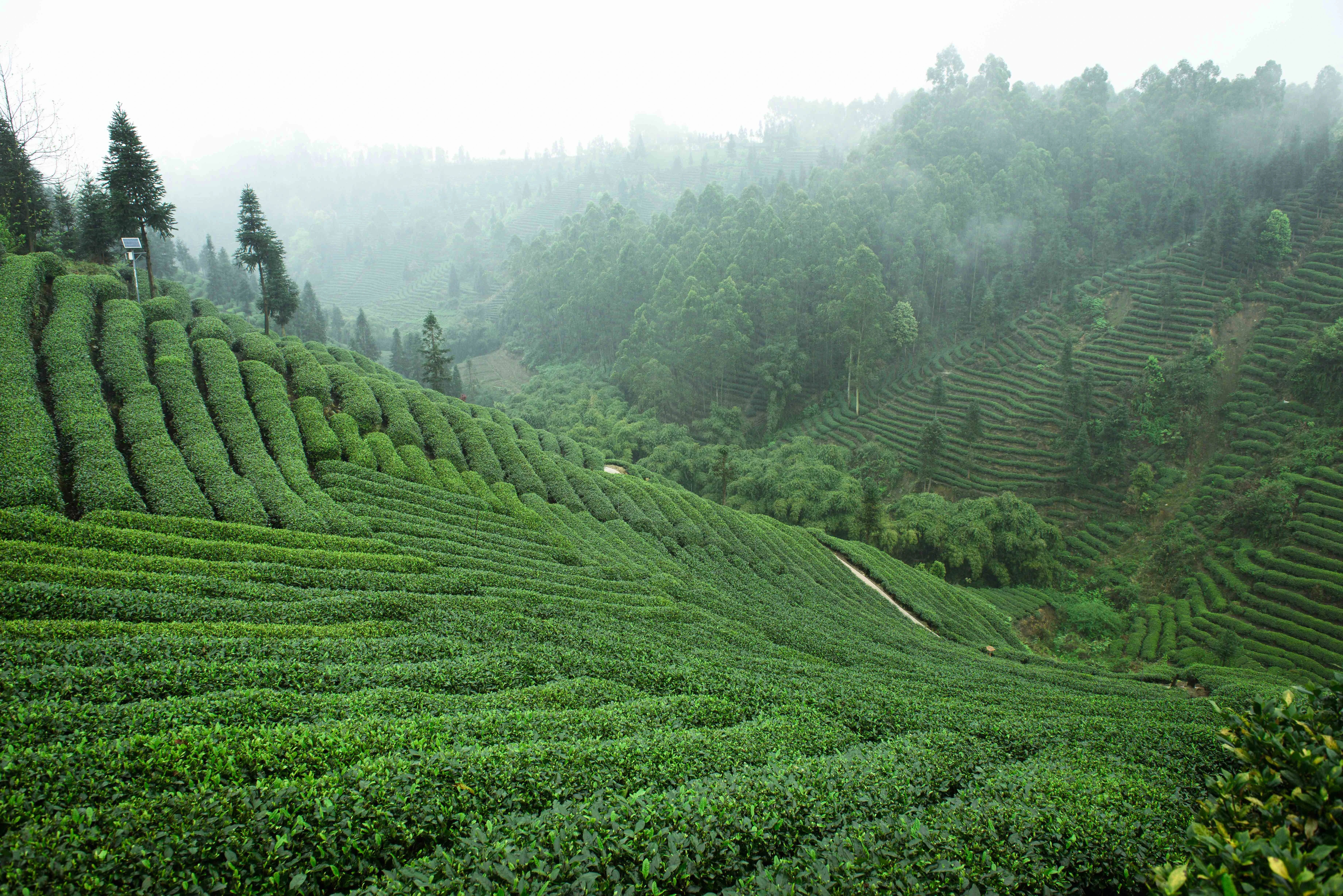 名山区牛碾坪万亩观光茶园,不论你何时来,他都能美成了一副生动的自然画卷。红星镇的骑龙场地势开阔,茶园面积达20000余亩。是雅安市最早良种茶树繁育基地,被誉为“梯田茶乡”。