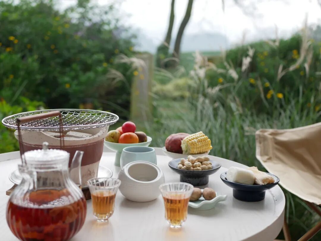 不仅能煮茶,还能煮酒!一杯热红酒下肚,温暖的不只是体,还有那颗被生活反复捶打的心~玩土茶谷这个540㎡的野奢小院,重新定义了围炉煮茶的乡村生活~燃起篝火,备好美食美酒,一群趣味相投的人放肆嗨放肆饮,在山野间坐享一片自由时光~