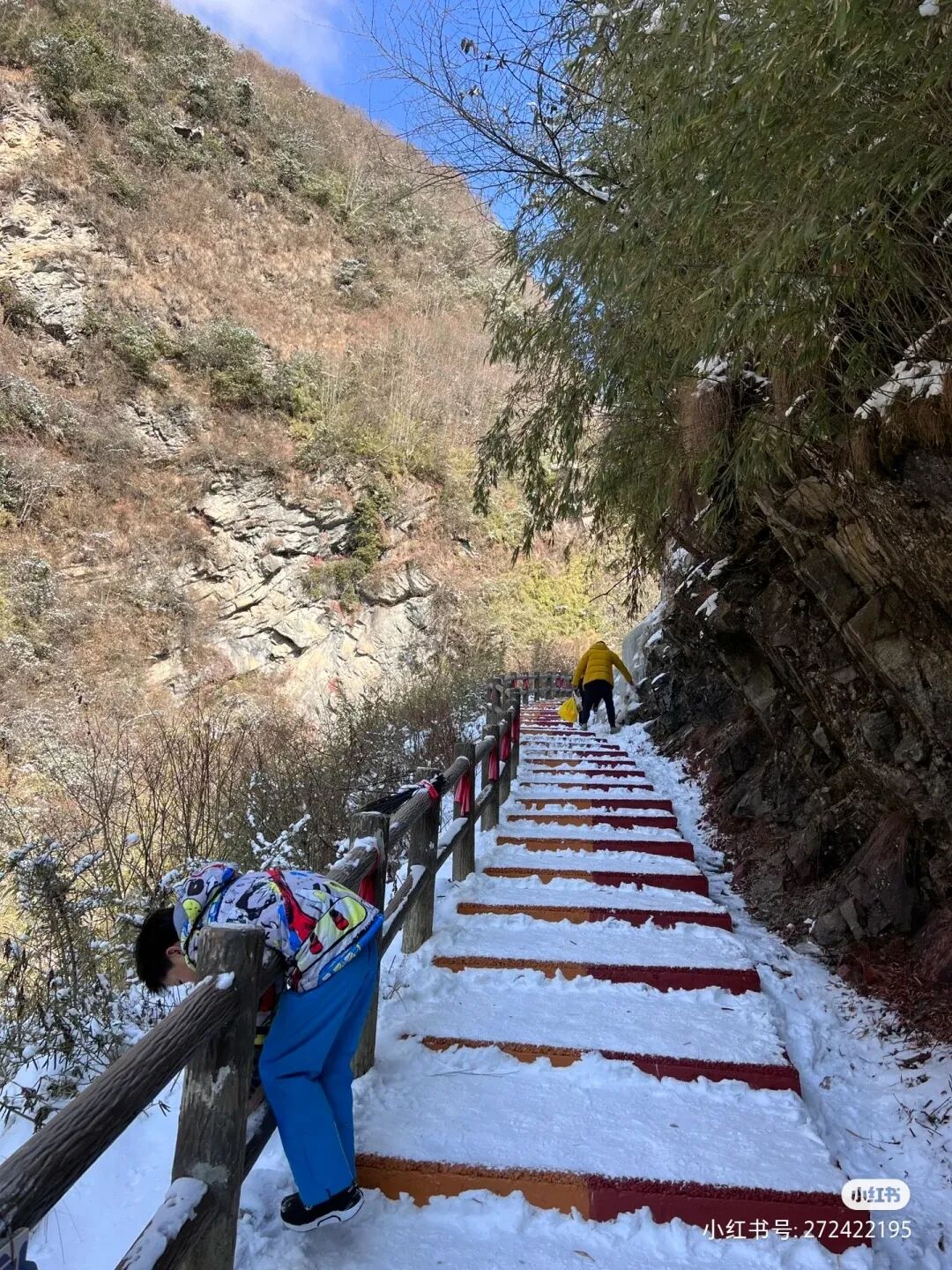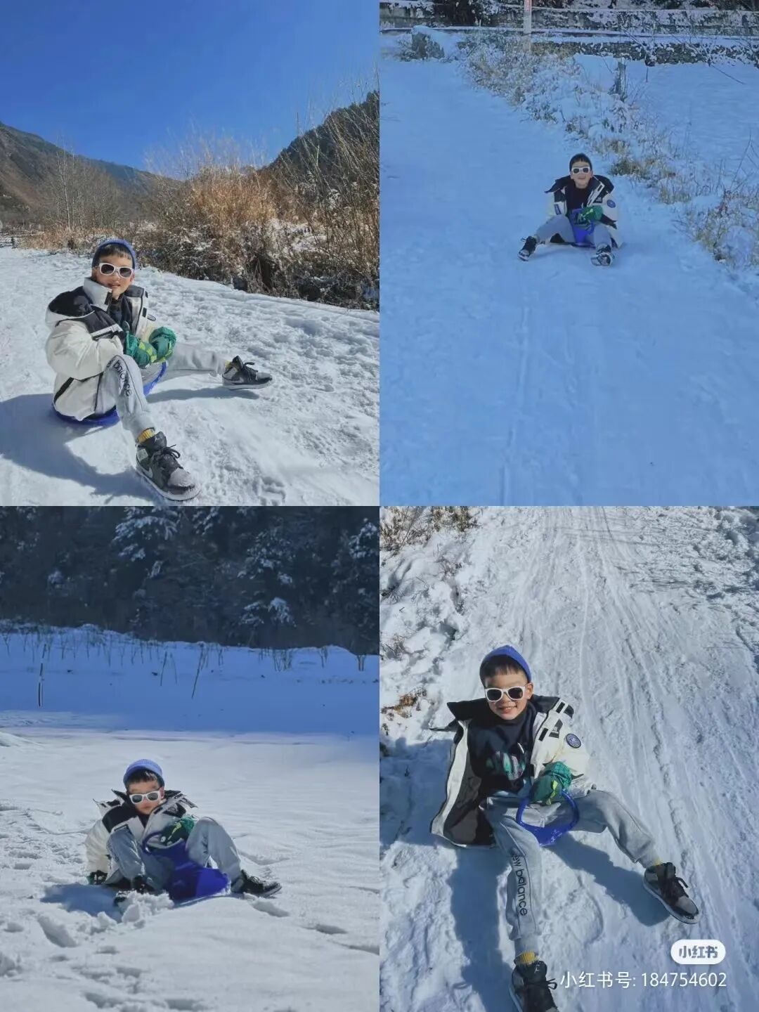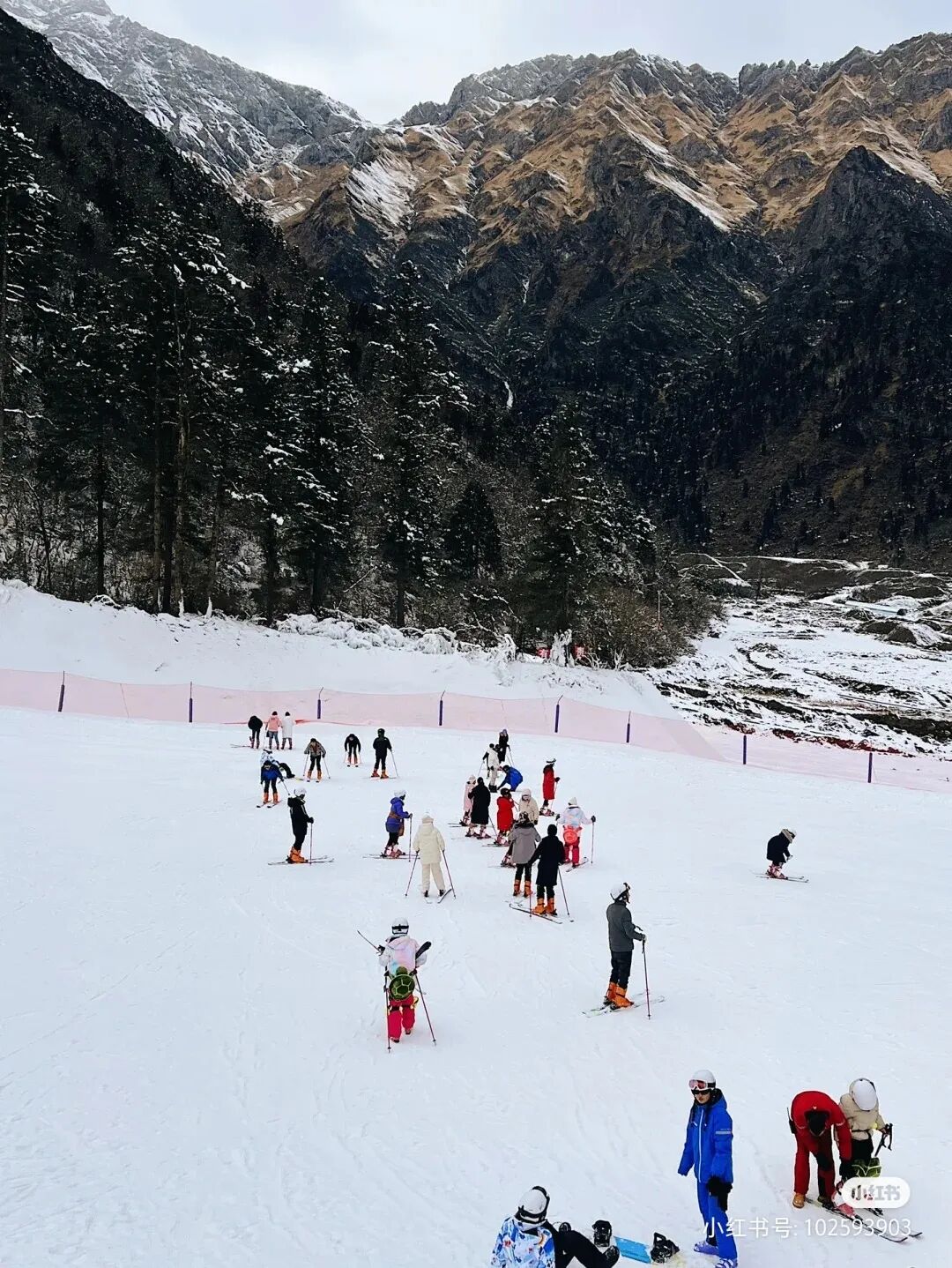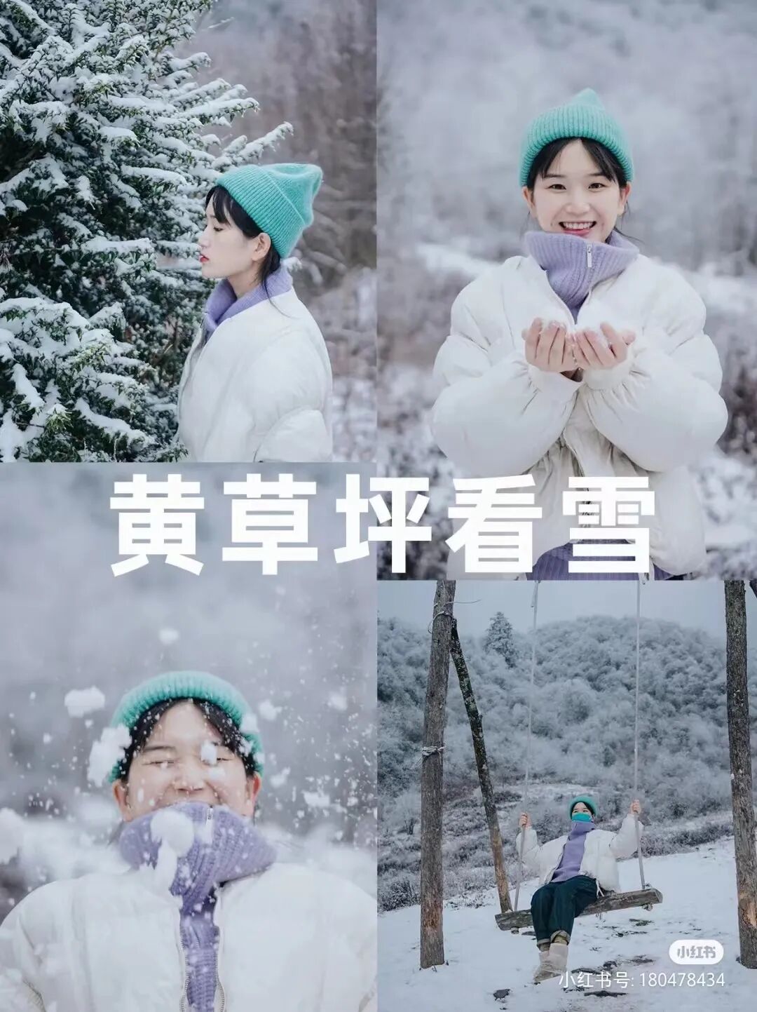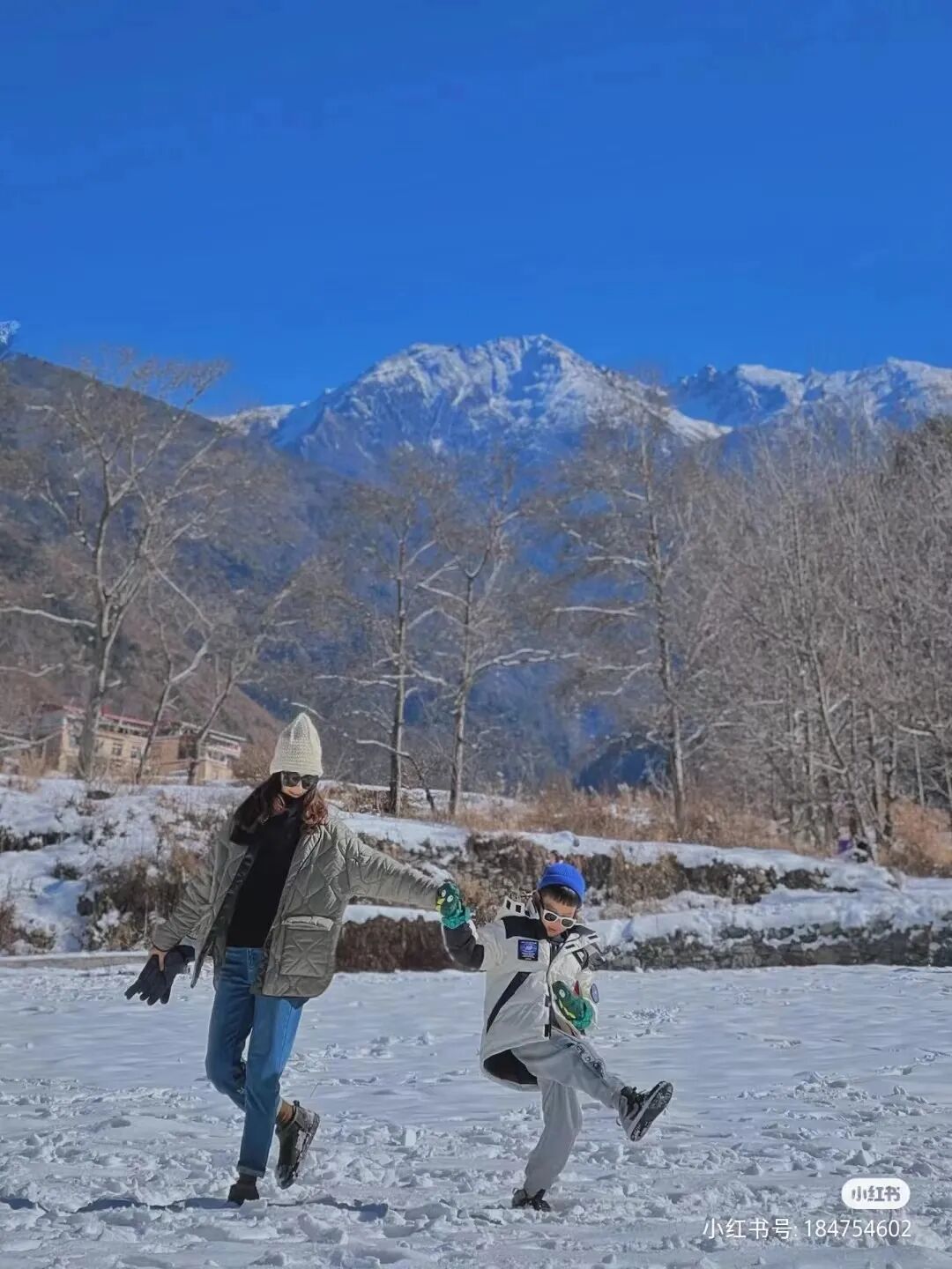 图源小红书:殷小殷全程基本0难度的徒步路线,平坦的水泥路面,厚雪覆盖时,就形成了天然的滑行道,带上滑雪板就能敞耍!以上皆是耍家元旦的实拍,当地人说,1月中旬这里的积雪会更厚!对了,黄草坪位于熊猫核心保护区,旁边就是卧龙熊猫基地。亲子家庭早上可以带娃娃看熊猫,下午耍雪赏美景,周末轻松一日游,简直不要太安逸~出行tips