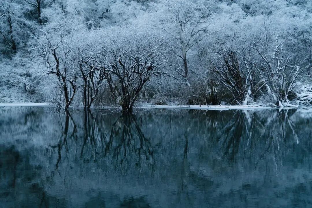 站在海子前,身后是白茫茫的树林,面前是清澈见底的湖面,哪怕就是静静的站在那里,随手一拍都能出片。