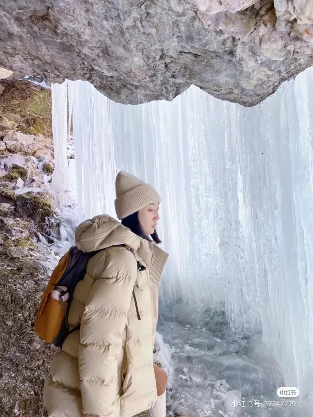 除了阿尔沟,汶川的雪景还有很多值得你去解锁,比如这片蓝色冰瀑,耍姐见到它的第一眼就被一整个惊艳住。冰瀑从山顶倾斜而下,一层一层,呈现蓝色的冰挂,“远看如白练,近看似利剑”,大概就是形容这般场景了。遇上阳光,冰柱又会发生折射现象,像极了天然水晶,显得格外耀眼好看。在外面是一幅景象,走到冰瀑内侧,好像又是另一幅天地,光线变幻使得这里如同童话世界般,美得不真实。成都出发2.5h就能刹拢这里,车子只能开到村口,村子到冰瀑还有3公里的山路,你可以选择徒步或者坐当地的面包车到达,面包车按人头算20元/人,人多可以跟师傅讲讲价哦~一定要带冰爪,冰面走路巨巨巨滑!当地也有冰爪出租5-10元一副,靠自己砍价哈!对了,这里是野生景点没有饭店,山下有村民卖小吃,想去的耍家记得自备干粮哦~出行tips
