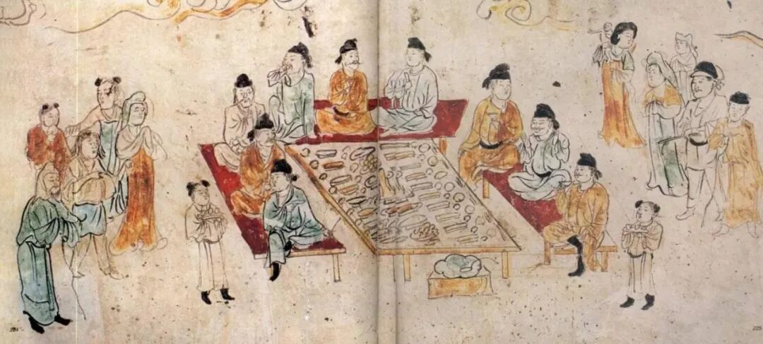 唐代的《野宴图》,能明显看见筷子是横在盘子前的