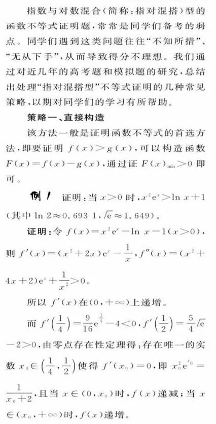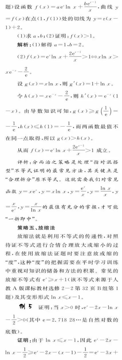 “指对混搭型”不等式证明的处理策略