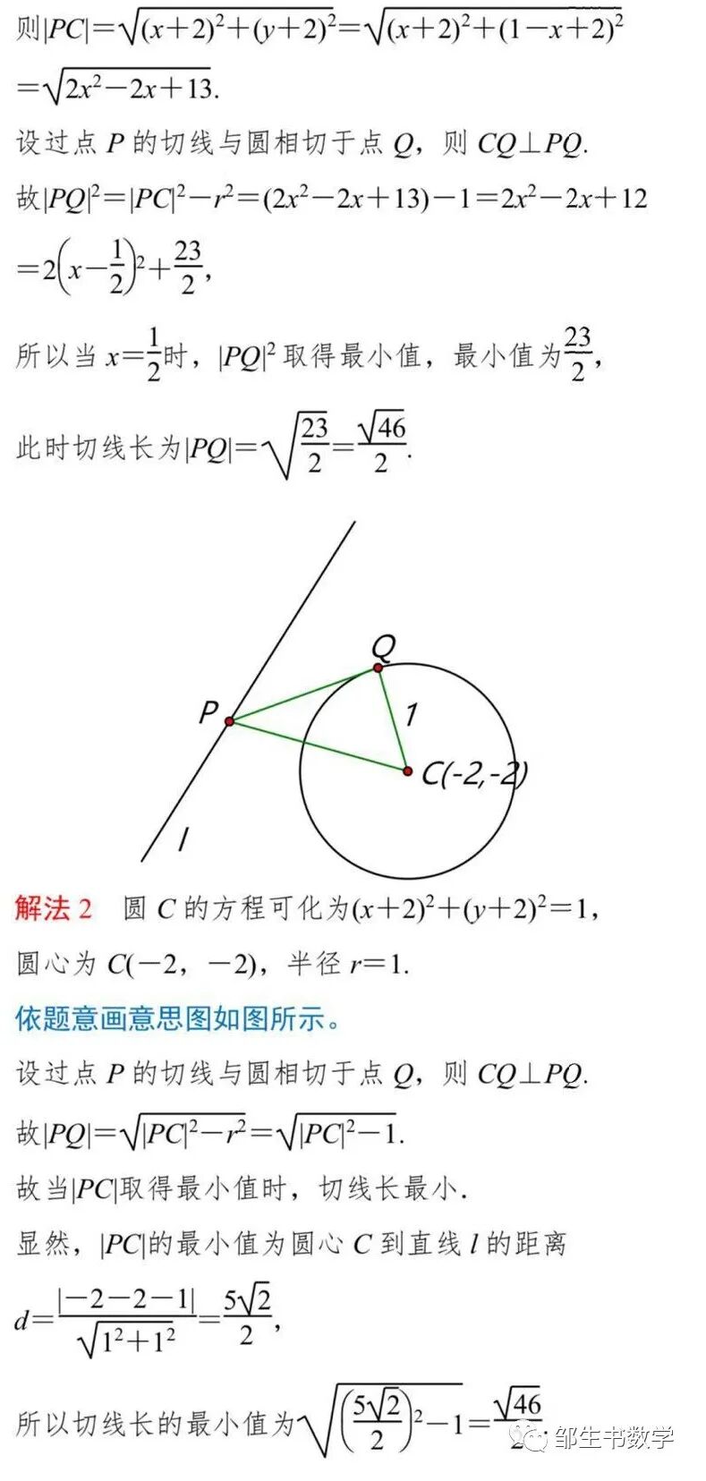 解法1圆C的方程可化为(x+2)2+(y+2)2=1,