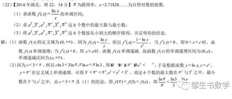 2014年湖北卷理科数学第22题是一道有6个指数形式的实数比较大小的大题目,实数比较大小不仅出现在大题,而且是压轴题的位置,将实数比大小推到了高峰。真是:前无古人后无来者。空前绝后。试题与解答如下: