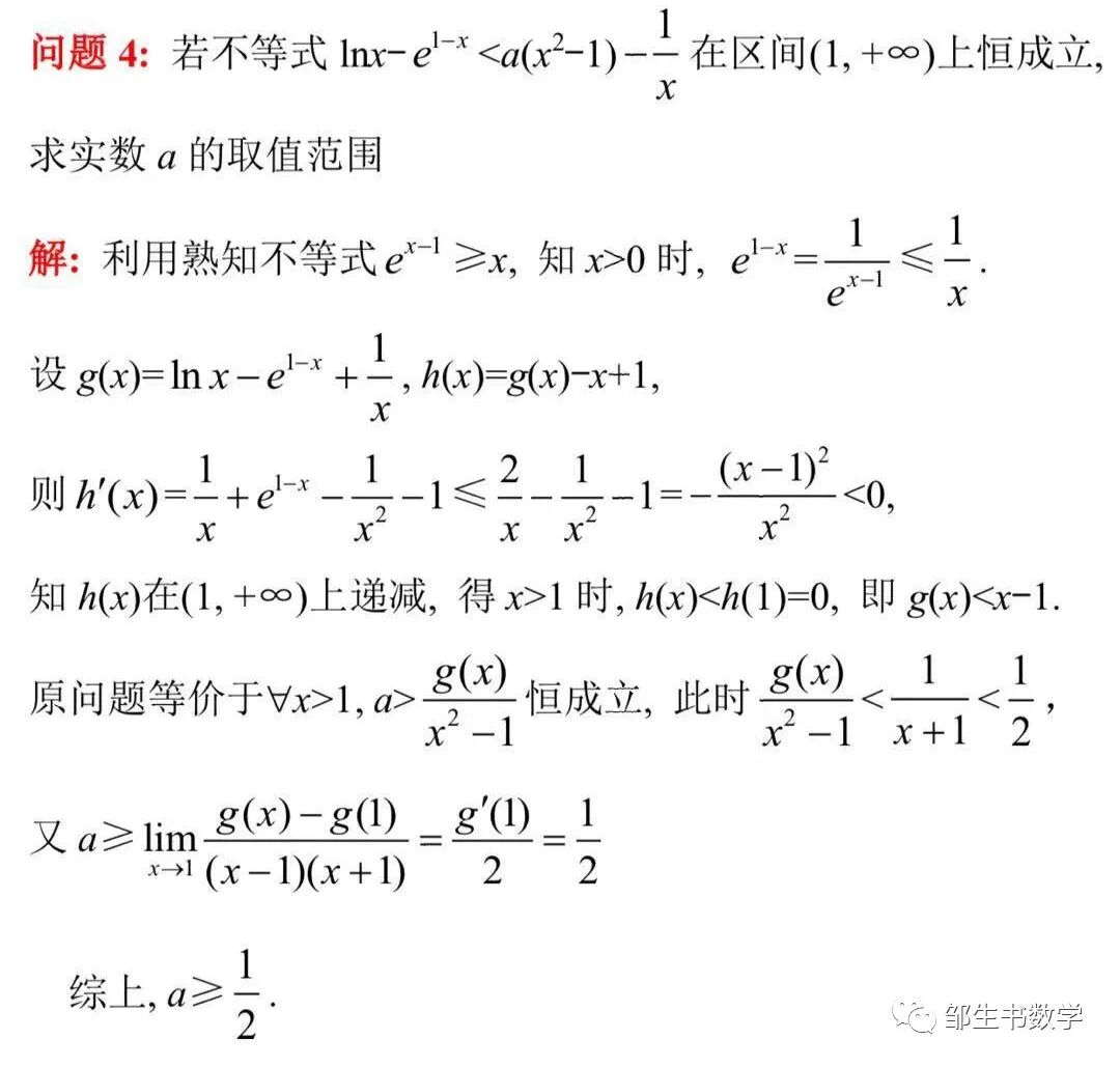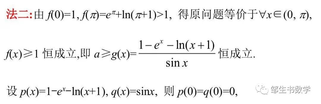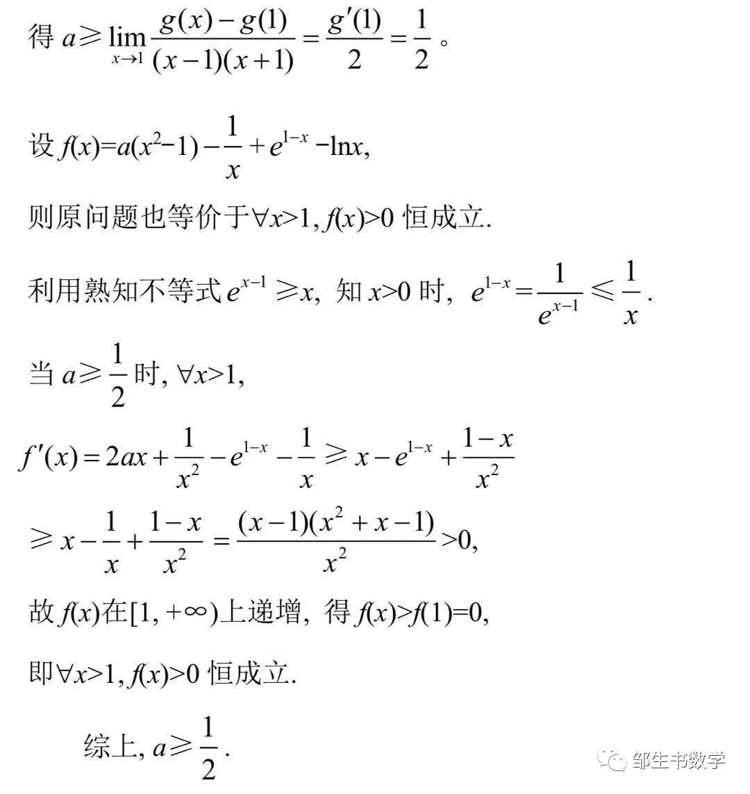 (注:此解法中采用先必要后充分的方法, 对导数作了适当的放缩)