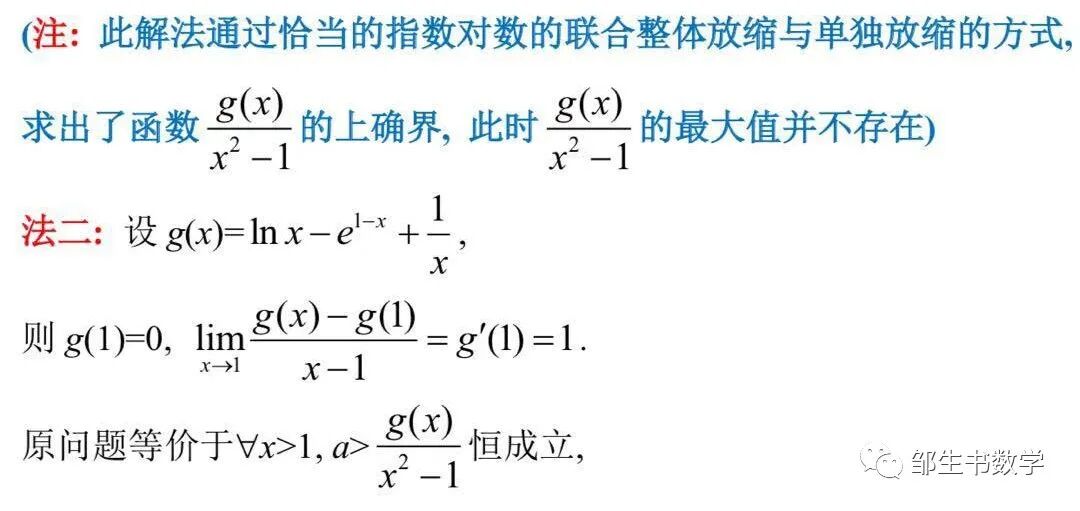 (注:此解法通过恰当的指数的放缩方式, 求出了函数g(x)的上确界, 此时g(x)的最大值并不存在)