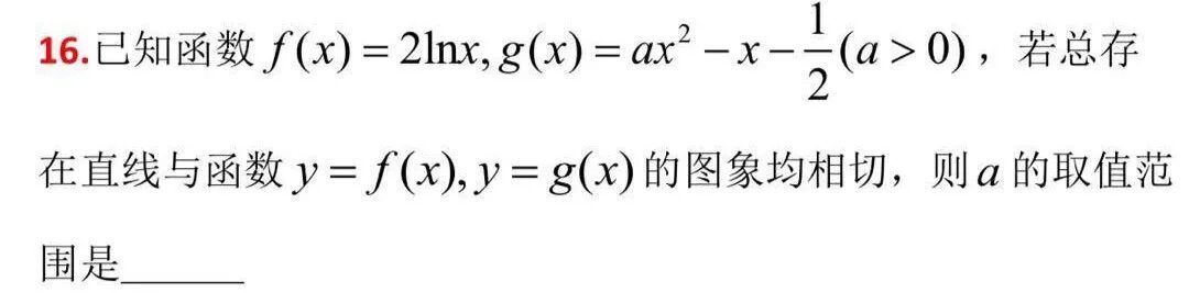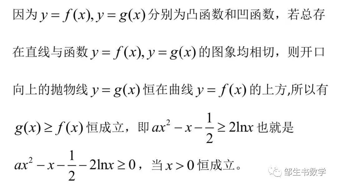 解法2:由题设易知这两个函数的图象一个凸一个凹,一个含有参数另一个不含,两个函数图象一动一静,于是只要求出这两条曲线相切时参数的值,则问题就迎刃而解了。