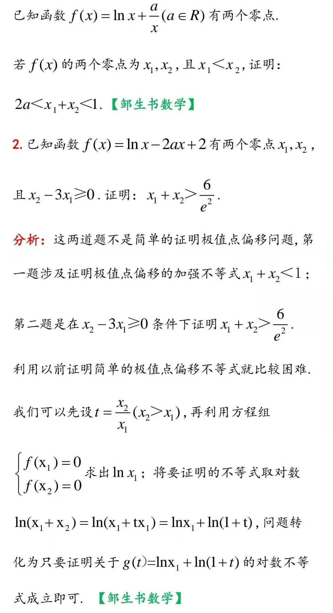 换元与取对数证明两道极值点