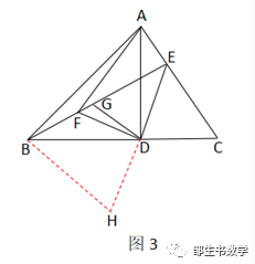点评:此法由我的学生陈奥莹同学提供,通过“倍长线法”来构造三角形的中位线,同时还构造了许多全等三角形.通过两次全等三角形的证明完成第(1)小问.与证法一相比而言,证明过程更为简单.第(2)小问的证明也非常简单明了.
