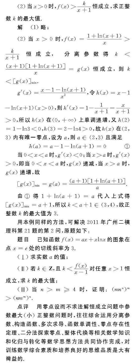 邹生书——例谈零点设而不求法在解题中的应用