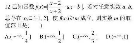 【编者按】这是某高考模拟试题的第12题,是一道含有双参数、绝对值、全称量词和特称量词的综合型小题,这类问题能力立意,综合性强,思维含金量高,倍受命题人关注,在近年的高三联考和模拟考中频频亮相。洪一平老师对这类问题的解法研究可谓是透彻高屋建瓴深透彻全面,一共总结了四种基本解法,现以这道试题为例,一一介绍这四种方法,以飨读者。