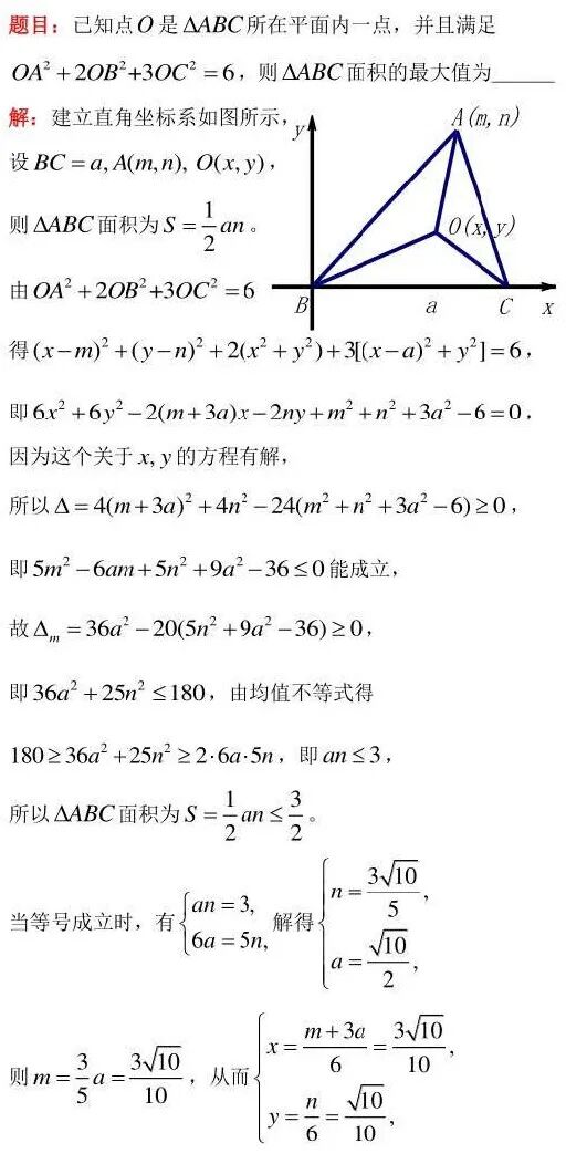 三点满足OA2+2OB2+3OC2=6,则△ABC面积的最大值为______