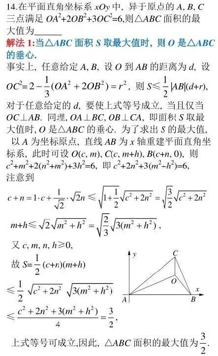 14.在平面直角坐标系xOy中, 异于原点的A, B, C