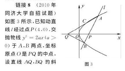 点评 例2是一道典型的定值问题,上述解答从正面出发直接求出结论为定值,有一定的计算量.圆锥曲线“定型”问题还包括直线过定点或点过定直线等题型,下面链接几道这方面的问题,供读者思考解决.