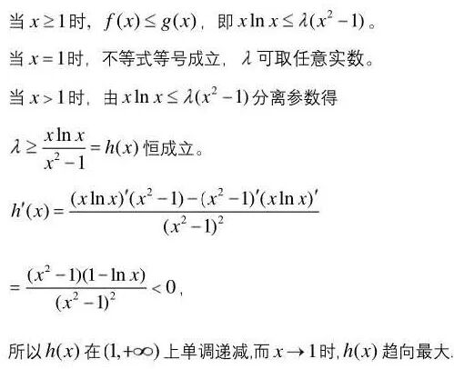 评注:这是编者所在学校高二年级的一道周测试题,本题第1问比较简单,第2问含有参数的函数不等式恒成立,求参数的取值范围问题,根据问题特点本题属于“端点效应“类难题。“端点效应”问题是高考和模拟考的热点和难点问题,解决这类问题的思路主要有两条:一是对参数分类讨论求解,这种方法在解题实施的过程中往往会遇到很多难点,解题之路迂回曲折处处受阻。关注细节,认真观察,寻找突破,都显得非常重要。其中严谨性是问题解决的一个最大难点和失分点;二是用分离参数法,分离参数后的函数是一个分式函数,求导知道函数是单调函数,而在端点处函数无定义,且在端点处函数的分子分母的极限均为0,函数极限属于“0/0”型,这也是所谓“端点效应”问题的由来。这种解法方向明确解题之路为阳光大道。处理“0/0”型极限的最传统的方法是洛必塔法则,解法虽然简单但超出了高中数学内容。李鸿昌老师在《回归导数概念,求解“0/0”型极限题》一文中介绍了用导数极限定义求解的方法,这种解法回避了洛必塔法则,高中生可以接受。