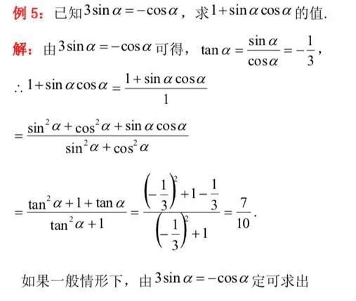 如果一般情形下,由3sinα=-cosα定可求出sinα,cosα的值,代入即可,这样的话运算量较大。巧用“1”将分子分母都凑成关于“弦”的二次“齐次式”,可同时约去cos2α,从而大大地简化了计算。