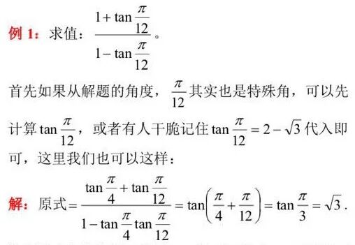 这是课本上的解法,利用π/4的正切值是1,正好凑成了两角和的正切公式,从而求值,围绕这一思路,根据形式需求,凑成其它特殊角的其它三角函数值也是可以的。
