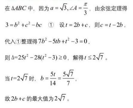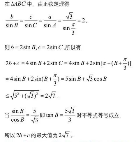 三角形中2b+c最大值试题的几个解法