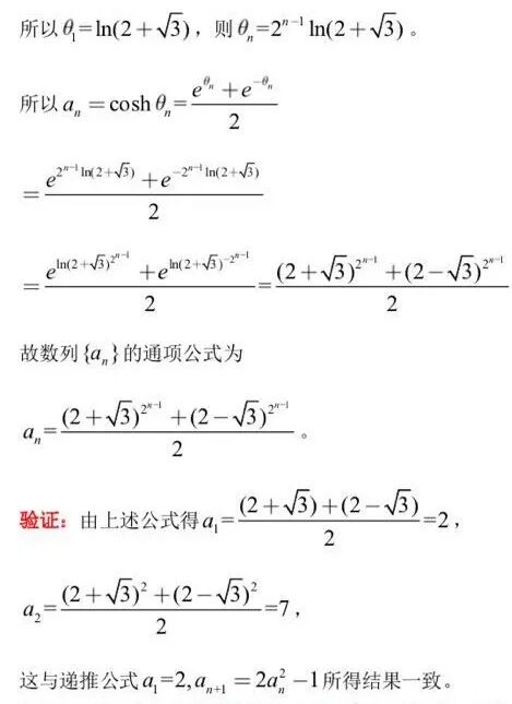 下面用双曲余弦函数的上述性质求这个数列的通项公式。