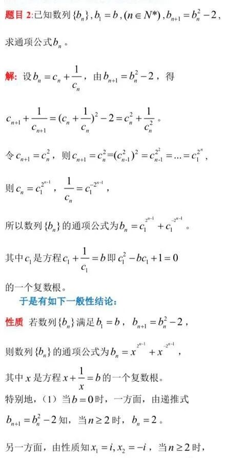 两种特殊的二次递推式,配方后才能通过换元转化成基本型bn+1=bn2-2求解通项。