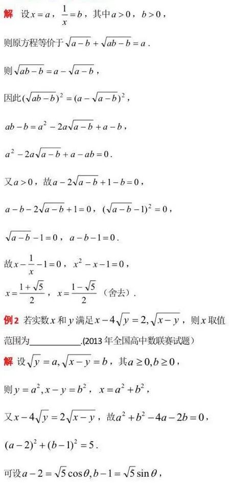 利用双换元 巧解数学题