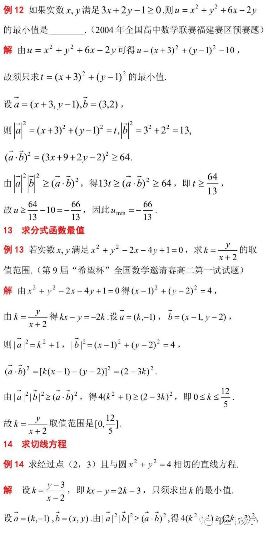 下面就用文[12]中的例题来说明|a|2|b|2≥(a•b)2的解题功能.为便于比较,例题的顺序也不改变.