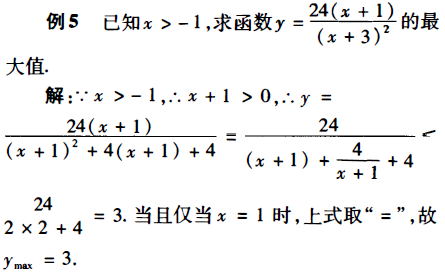评注:有关分式的最值问题,若分子的次数低于分母的次数,可考虑改变原式的结构,将分子化为常数,再设法将分母“配凑定积” 。