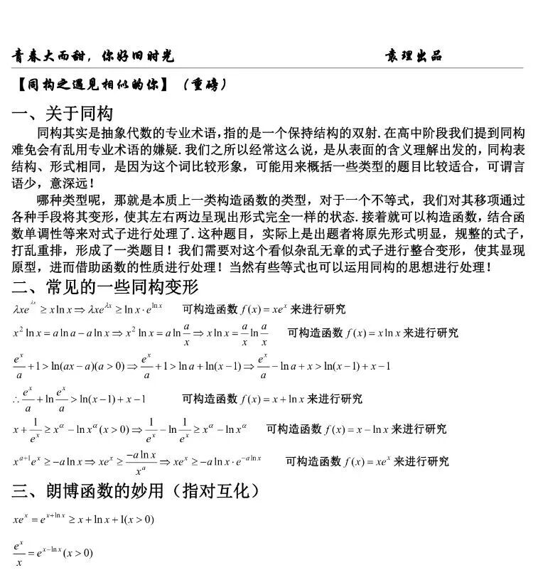 7.老唐说题——导数压轴题之同构式的三“生”三“释”+8个典型试题教你学同构