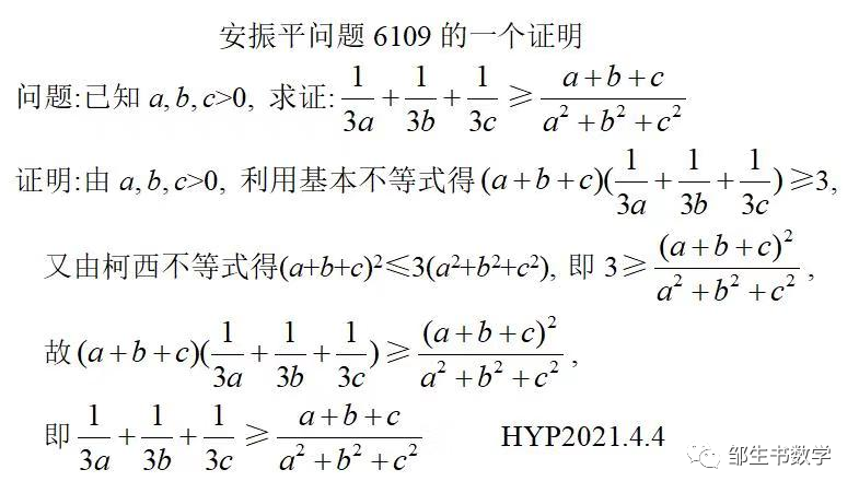 安振平问题6109的一个简洁证明