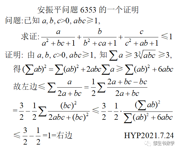 184.洪一平——安振平问题6276的一个证明