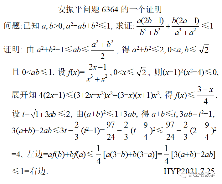 180.洪一平——安振平问题6264的一个证明
