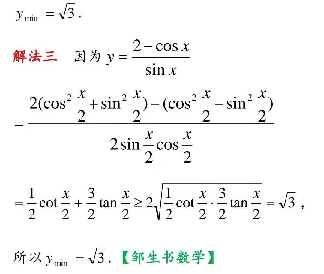评注 这道竞赛题只相当于课本例习题的难度,本文所介绍的三种解法都比较简洁,文[1]所介绍的方法只是一种行得通的方法.此题也可以用导数来解决.