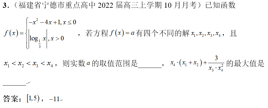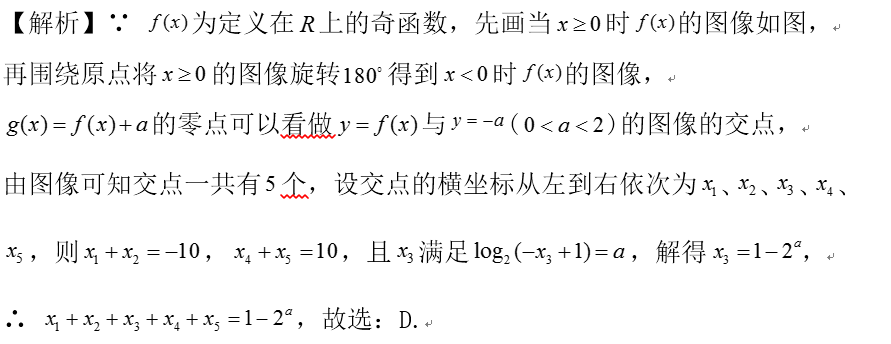 点睛:本题考查函数零点问题,解题关键是把函数零点转化为函数图象与直线的交点的横坐标,从而可通过作出函数图象与直线,得出零点的性质与范围.