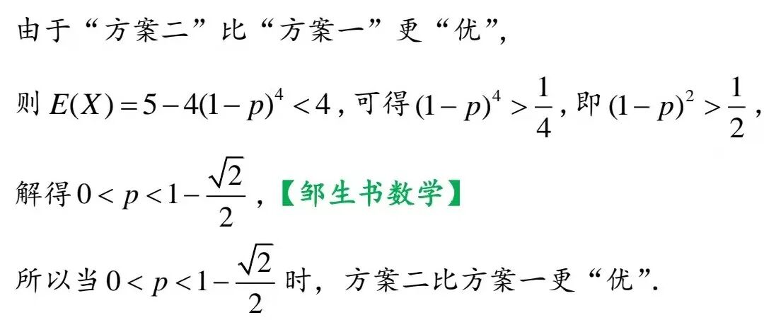 (2)若p=1/3,现将该4例疑似病例样本进行化验,请问:方案一、二、三中哪个最“优”?