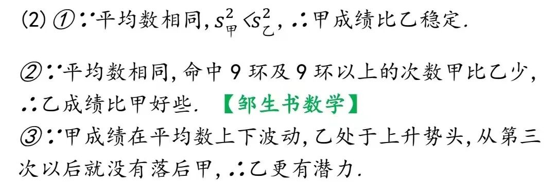①从平均数和方差相结合看(分析谁的成绩更稳定);