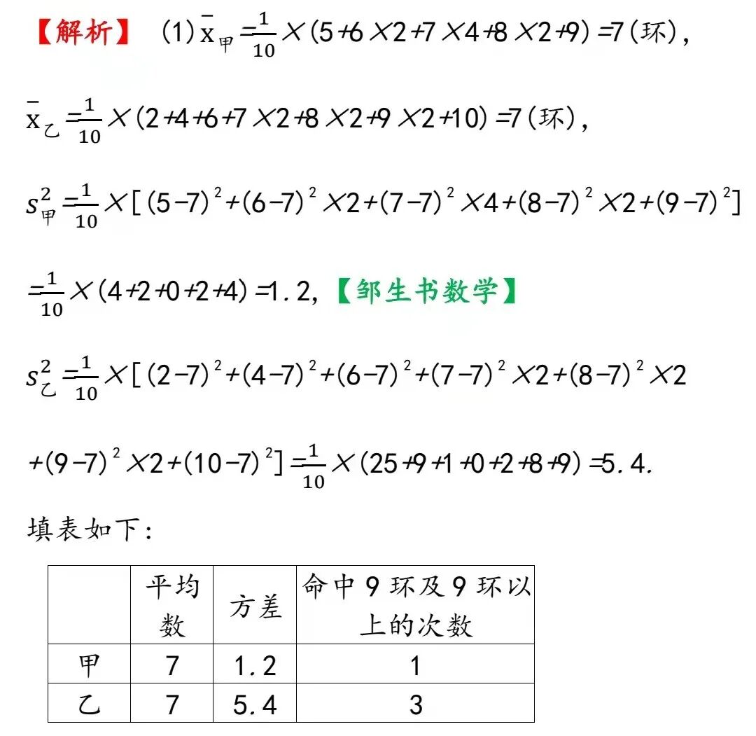 ②从平均数和命中9环及9环以上的次数相结合看(分析谁的成绩好些);
