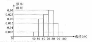 【题3】迎接冬季奥运会期间,某市对全体高中学生举行了一次关于冬奥会相关知识的测试。统计人员从全市高中学生中随机抽取200名学生的成绩作为样本进行统计,测试满分为100分,统计后发现所有学生的测试成绩都在[40,100]内,并制成如下所示的频率分布直方图。