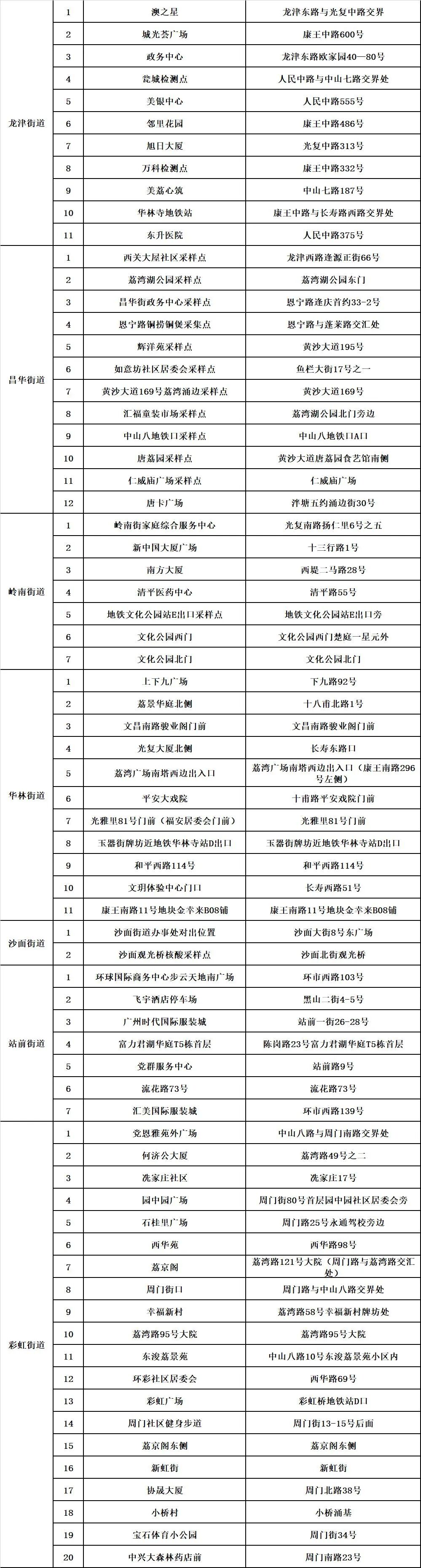 荔湾区各街道核酸检测临时采样点