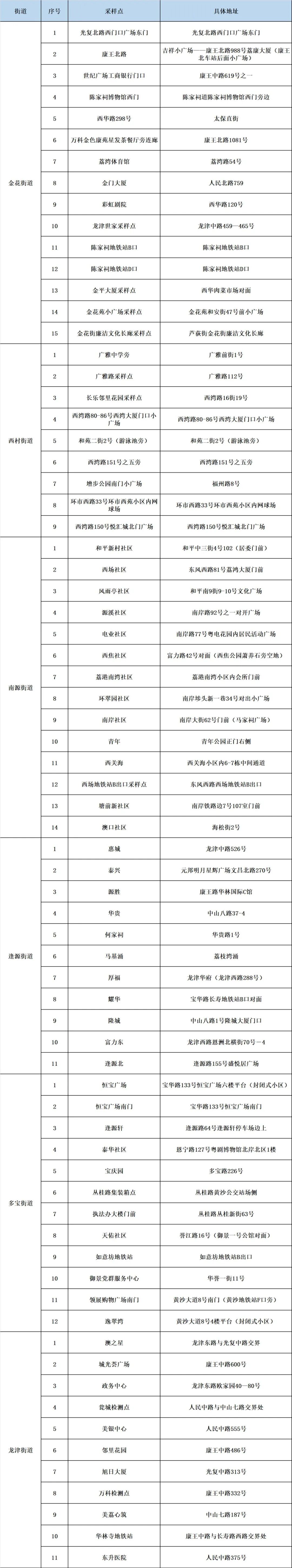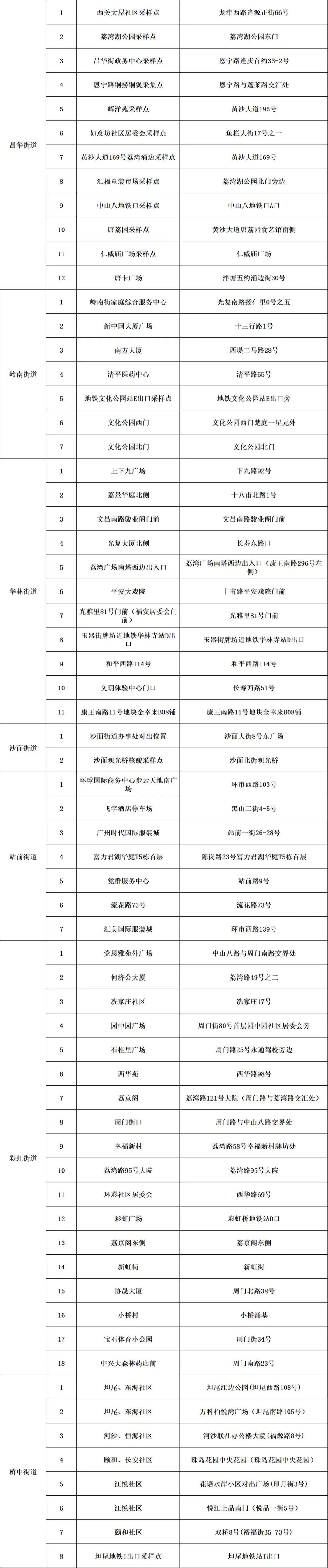 荔湾区各街道核酸检测临时采样点