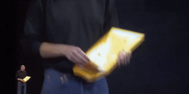 2008年1月16日,苹果MacWorld大会,乔布斯从档案袋里拿出了第一代Macbook Air,说: