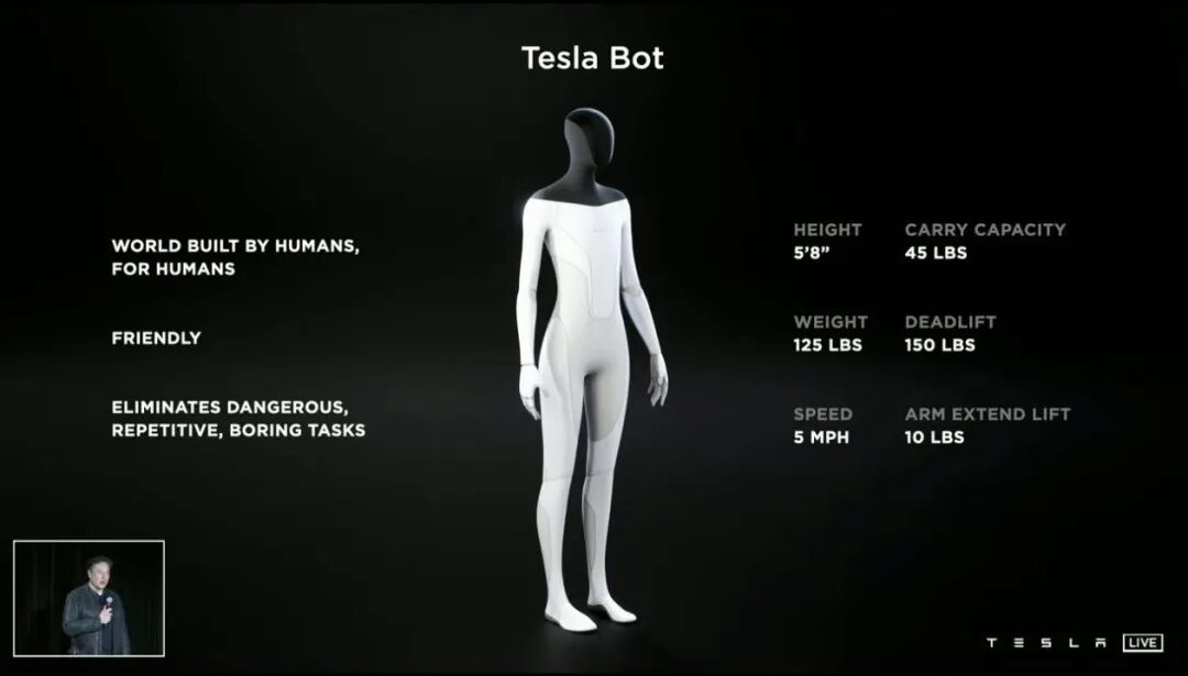 在马斯克的介绍中,这一款机器人是用来「消除危险、重复、无聊的任务」,比如购物、送货、维修、家政服务等等,逐步替代人类的繁重体力工作。它的视觉神经网络是基于特斯拉的自动驾驶技术,而且背后有超级计算机芯片支撑,纸面数据相当完美。当宣传视频结束后,每个人还沉浸在美好幻想中,就被迫迎来了买家秀。一位身穿白色皮衣,头戴黑色面罩的「机器人」,迈着僵硬的机械步走上秀台: