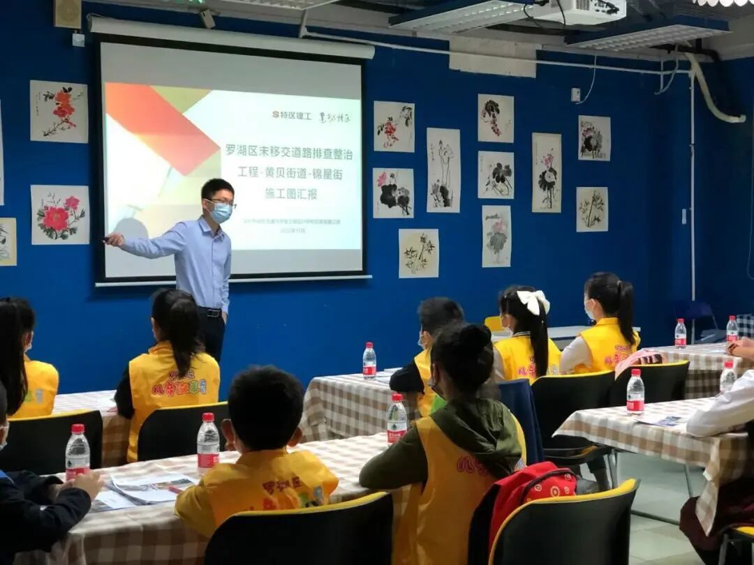 接着,深圳市综合交通与市政工程设计研究总院有限公司马泽彬工程师带领设计团队以深入浅出的语言为儿童议事员具体讲解锦星街改造的规划。